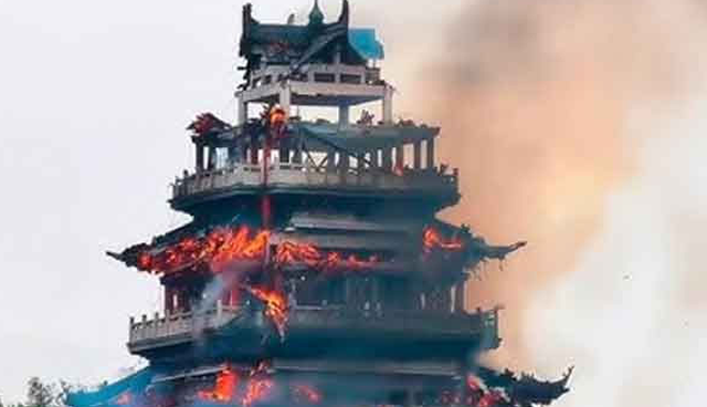 Incidenti ndodhi në Pavijonin Ëenchang, në Malin Fenghuang në Zhangjiagang, me strukturën trekatëshe që u përfshi nga flakët nga lart poshtë.