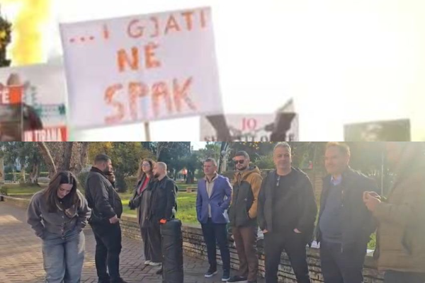 Aktivistët me pankarta në duar kërkojnë drejtësi dhe dënimin e duhur për zyrtaren e korruptuar të qeverisë Rama.