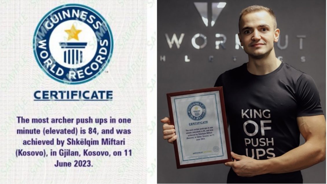 “Miq, shokë dhe gjithë ju dashamirës, ju njoftoj që pas një pune dhe përkushtimi të madh arrita të vendos rekordin e ri botëror në Guinness World Record në kategorinë ‘The most archer push ups in one minute (elevated)’”, shkroi gjilanasi.