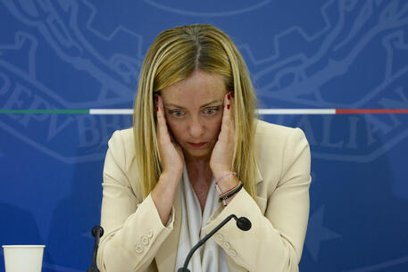 Italian Prime Minister Giorgia Meloni during a press conference at the end of a meeting of the Council of Ministers, 7 September 2023. ANSA/FABIO FRUSTACI