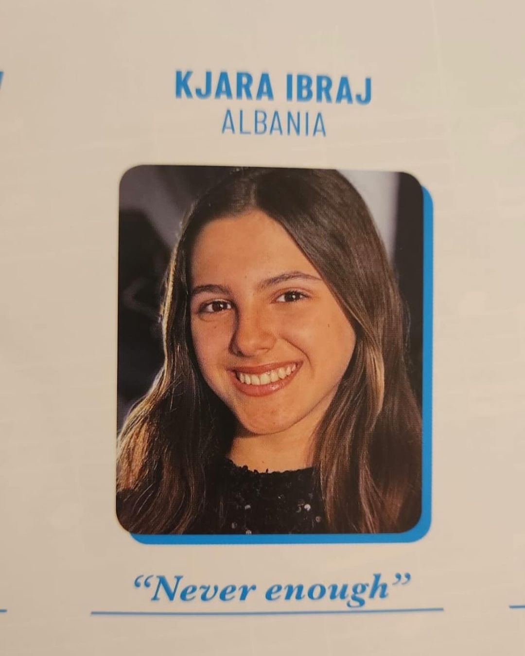 Kjara ka kaluar onlinë me sukses fazën e parë dhe fazën e dytë të pranimit në festival. Kënga e zgjedhur nga Kjara është ‘cover’ i “Never enough” të këngëtares Loren.