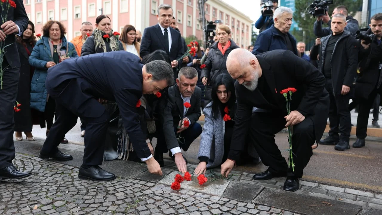 Pas konferencës për shtyp para familjarëve të viktimave të 21 Janarit, kryeministri Edi Rama dhe socialistë të tjerë iu drejtuan bulevardit ku humbën jetën Ziver Veizi, Aleks Nika, Hekuran Deda dhe Faik Myrtaj.