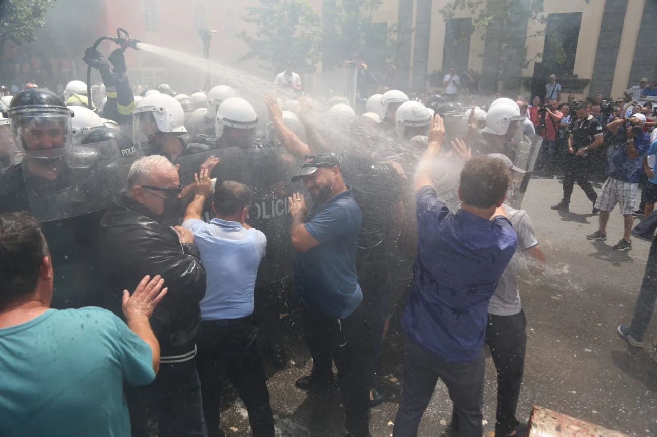 Pas përplasjes me policinë, këta të fundit u kundërpërgjigjën me gaz lotsjellës dhe ujë.