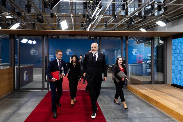 Kryeministri Edi Rama shoqërohet në këtë konferencë nga ministrja e Shtetit dhe Kryenegociatorja për integrimin në BE, Majlinda Dhuka, ministrja e Shtetit për Administratën Publike dhe Antikorrupsionin, Adea Pirdeni, zv/ministri i Drejtësisë, Tedi Dobi dhe zyrtarë të tjerë të linjës së katër kapitujve të negociatave të anëtarësimit të Shqipërisë në BE.
