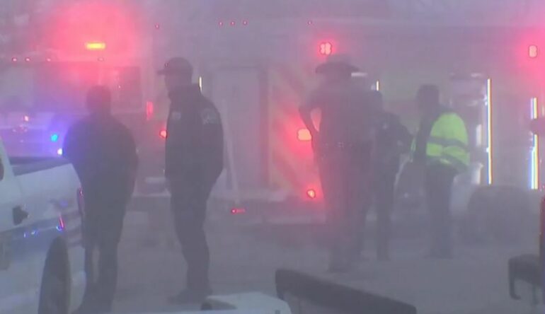 Një video e filmuar pranë Aeroportit Ndërkombëtar Scholes në Galveston tregoi ekipet e shpëtimit, përfshirë një ekip zhytjeje, që punonin në mjegull të dendur.