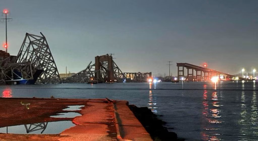 Një video e regjistruar me telefon celular shfaqi disa pjesë të urës “Francis Scott Key” duke rënë në ujërat e lumit, pasi një anije mallrash qe lundronte me flamurin e Singaporit, me emrin Dali, u përplas me një shtyllë mbështetëse mëngjesin e së martës.