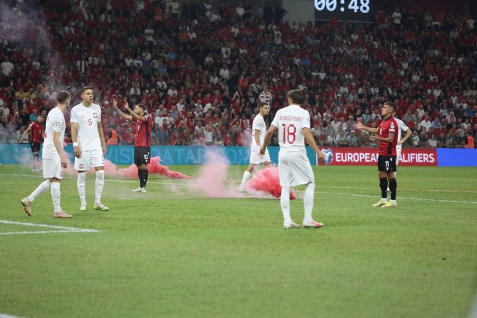 Policia e Shtetit identifikon dhe arreston dy persona pasi akuzohen se kanë hedhur flakadanë në ndeshjen Shqipëri-Poloni.